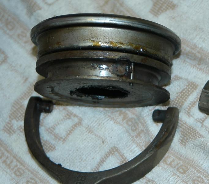 Here's a pic of my throwout bearing assembly. It's go a decent divot out of it where the fork contacts it. The bearing part itself is really sloppy, it must be shot. Does ihon sell these as an assembly, or bearing and collar apart?