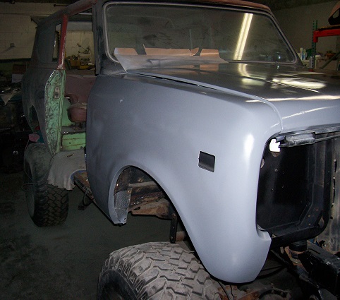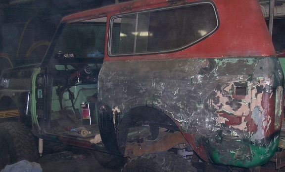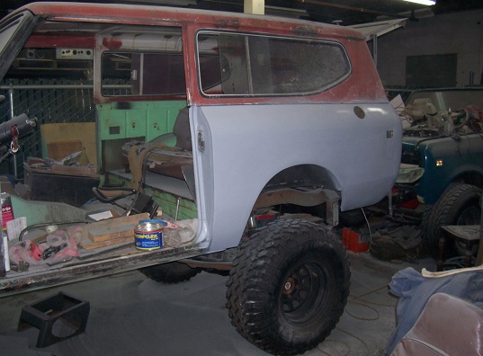 I won't be painting the top just yet.  When I pull it off and down on the ground, I need to finish up some of the po virus repairs.  Granted, that red top didn't originally come with this particular Scout.  The old one was so rusty that chunks of rust fell in your lap every time ya hit a pot hole.  So it was chopped up with the plasma cutter and then recycled with other scrapped up body parts from my rolled Scout