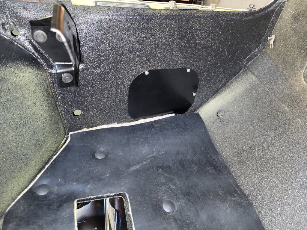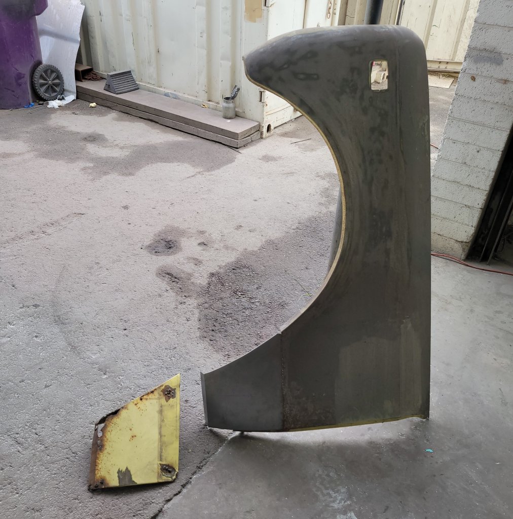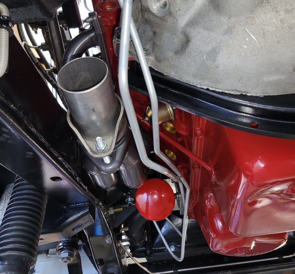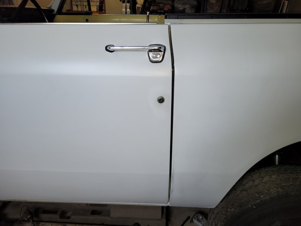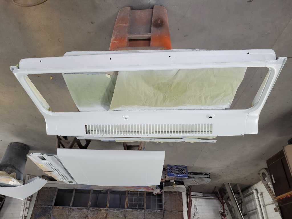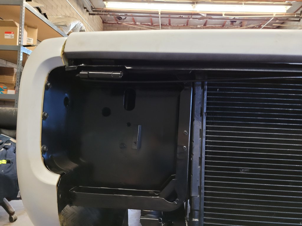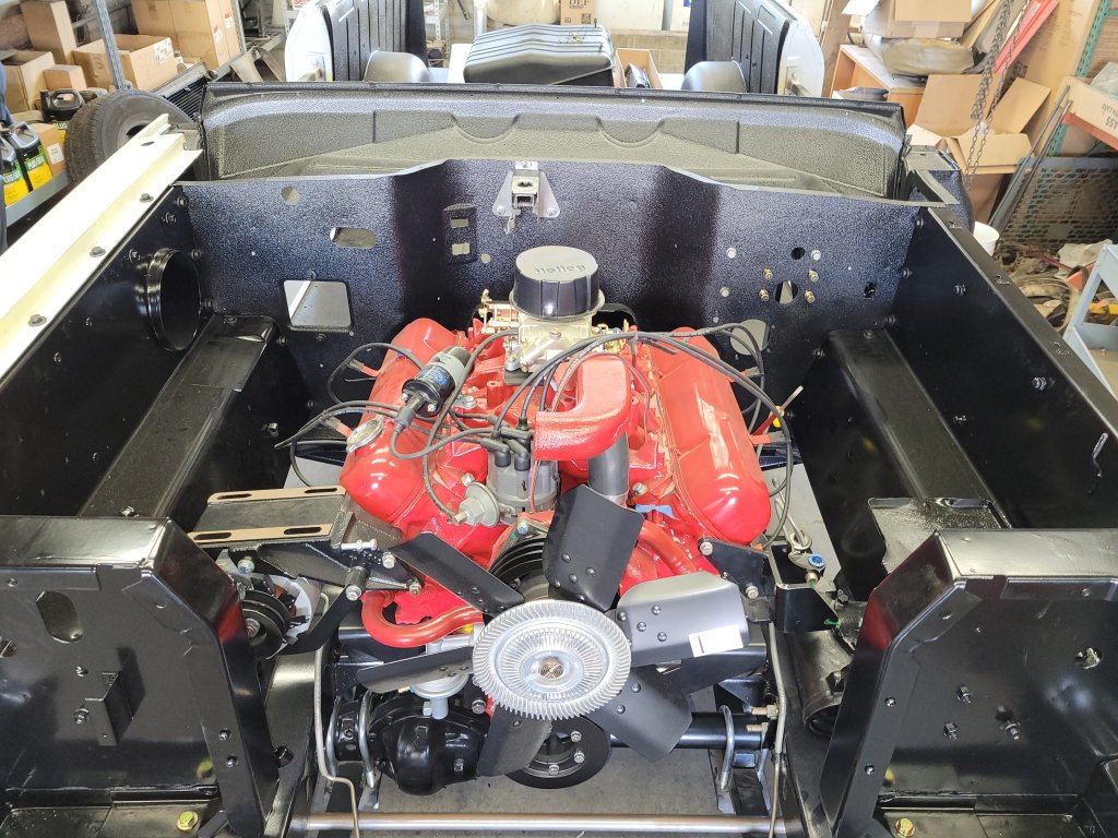 Jose our companies painter, whom keeps all of our construction rental equipment looking good has been working hard on the tub, fenders, doors, tailgate and windshield frame for the last two weeks. The driver side of the Scout starting at the lower corner of the front windshield and continuing through to the lower rear corner of the front fender had rusted through from a combination of packed dirt and rain over the years. On the fender he cut out the rusted portion and welded in a patch piece. On the windshield frame he cut out the rust hole in the lower drivers side corner, sand blasted and welded in some new metal. This past Friday I finally got the tub back on the chassis. I bolted in my reconditioned brake pedal and parking brake assembly along with the hood latch. I'm waiting patiently for my IHPA order to arrive with my firewall pad, hydro boost brake kit, master cylinder and proportioning valve so I can get those items installed so I can see where I will be mounting my 14 circuit wiring kit.
