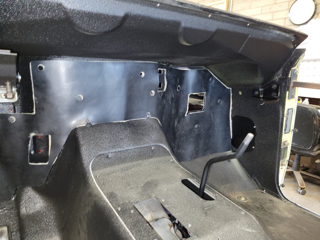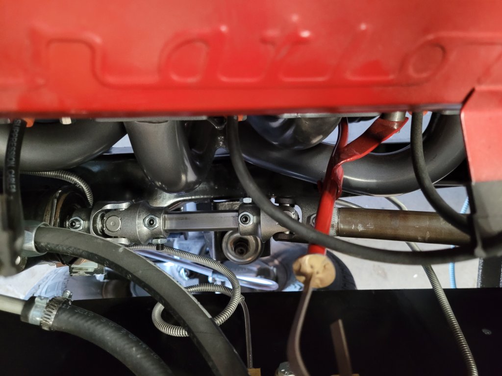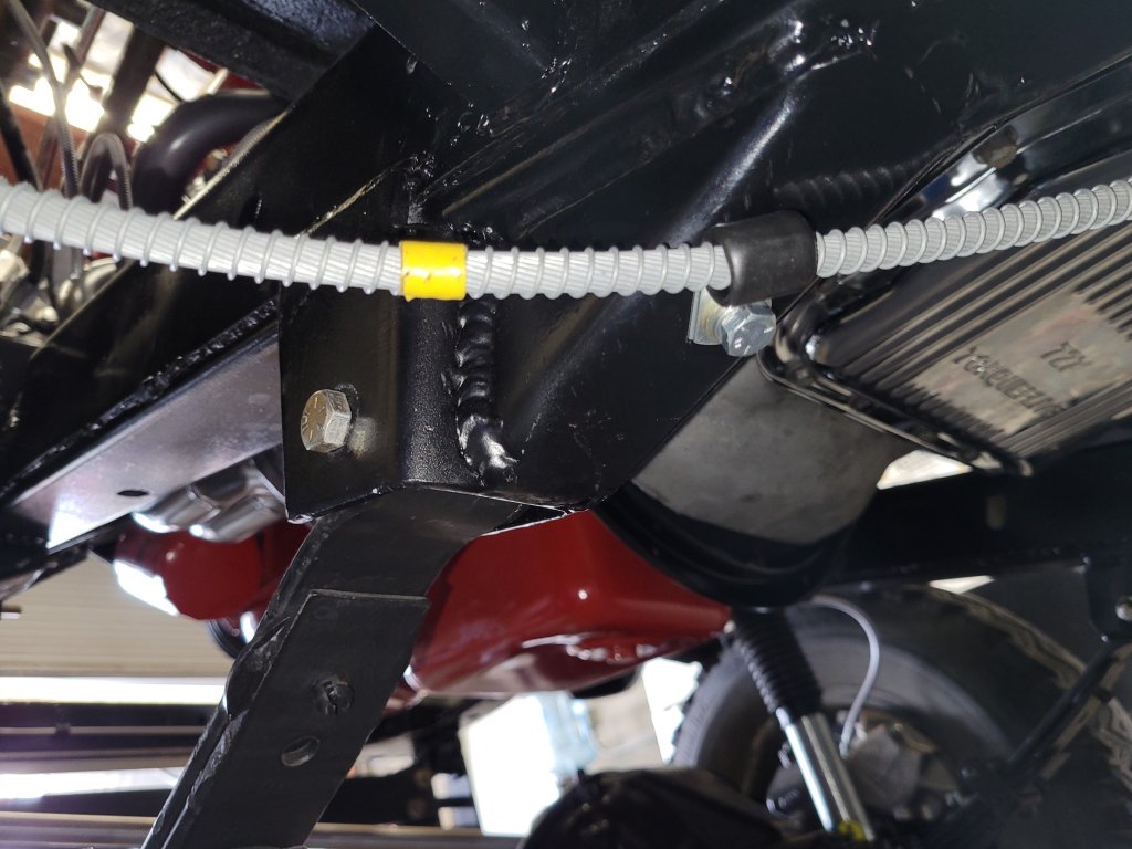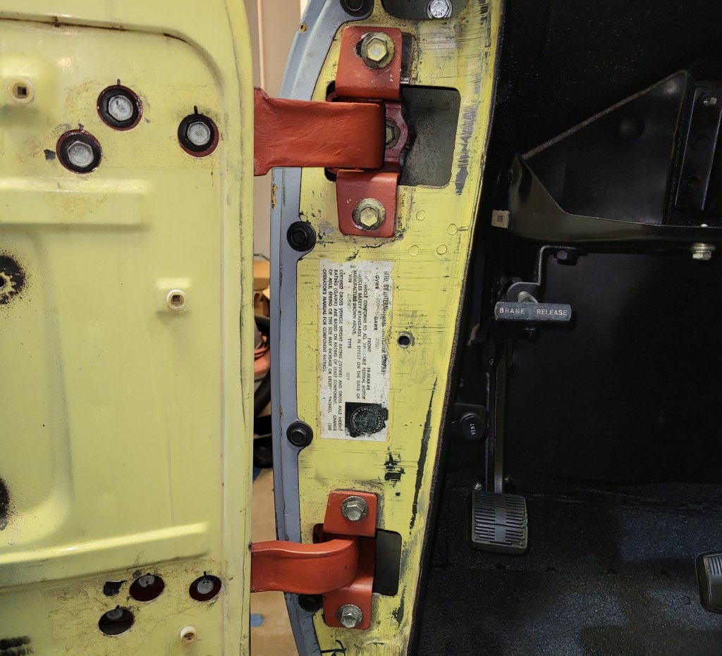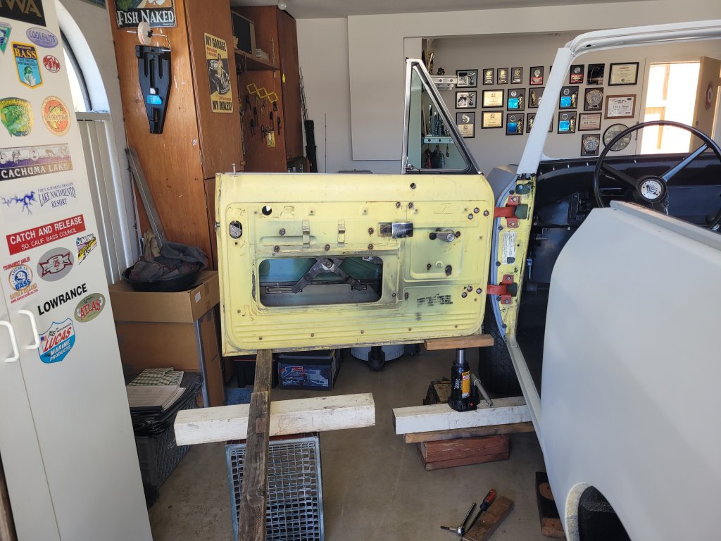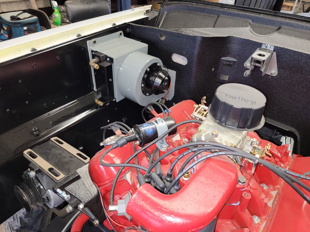 Jose our companies painter, whom keeps all of our construction rental equipment looking good has been working hard on the tub, fenders, doors, tailgate and windshield frame for the last two weeks. The driver side of the Scout starting at the lower corner of the front windshield and continuing through to the lower rear corner of the front fender had rusted through from a combination of packed dirt and rain over the years. On the fender he cut out the rusted portion and welded in a patch piece. On the windshield frame he cut out the rust hole in the lower drivers side corner, sand blasted and welded in some new metal. This past Friday I finally got the tub back on the chassis. I bolted in my reconditioned brake pedal and parking brake assembly along with the hood latch. I'm waiting patiently for my IHPA order to arrive with my firewall pad, hydro boost brake kit, master cylinder and proportioning valve so I can get those items installed so I can see where I will be mounting my 14 circuit wiring kit.