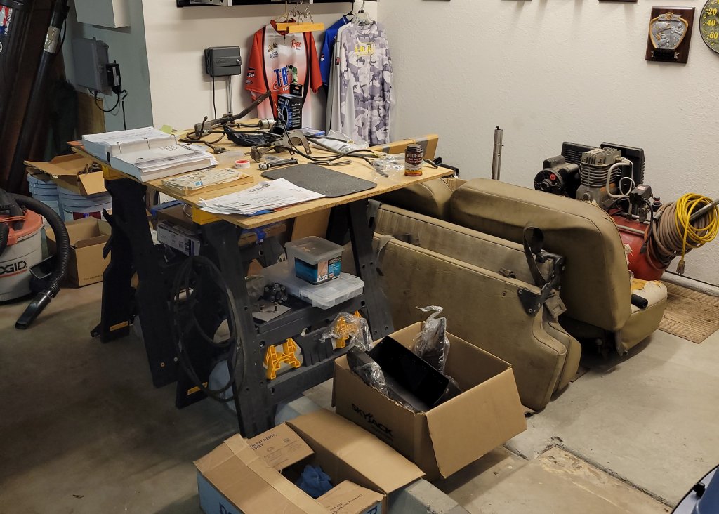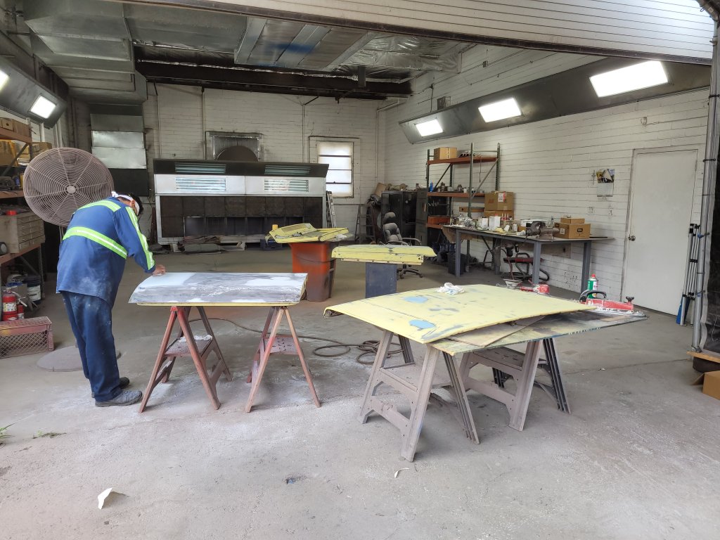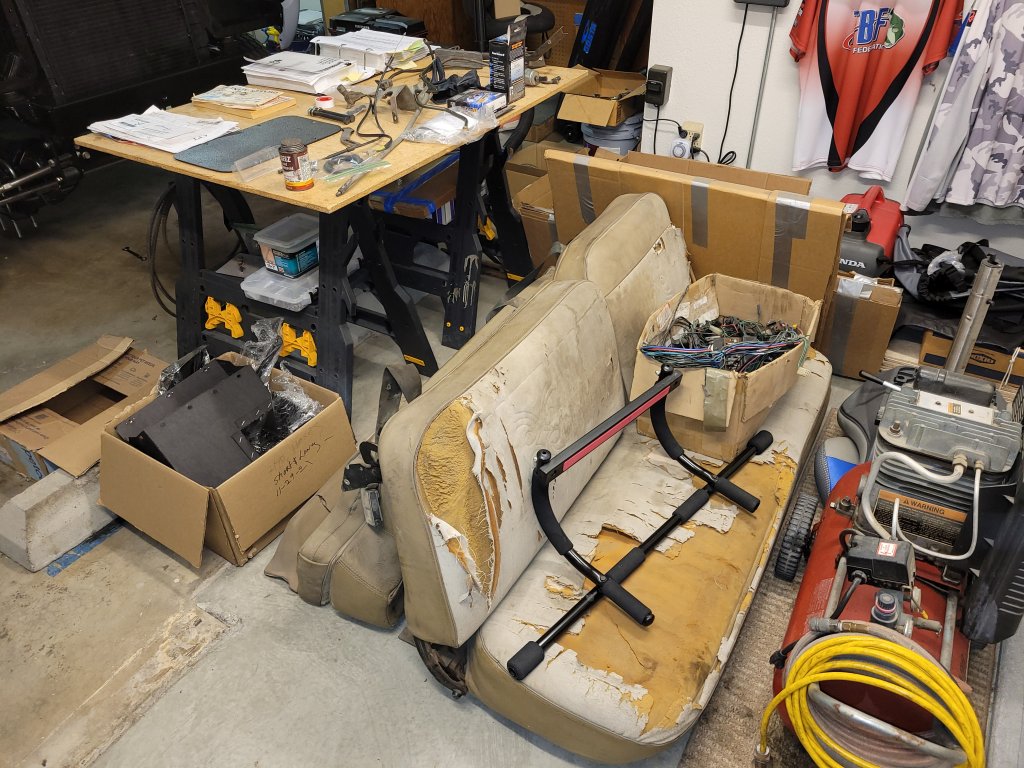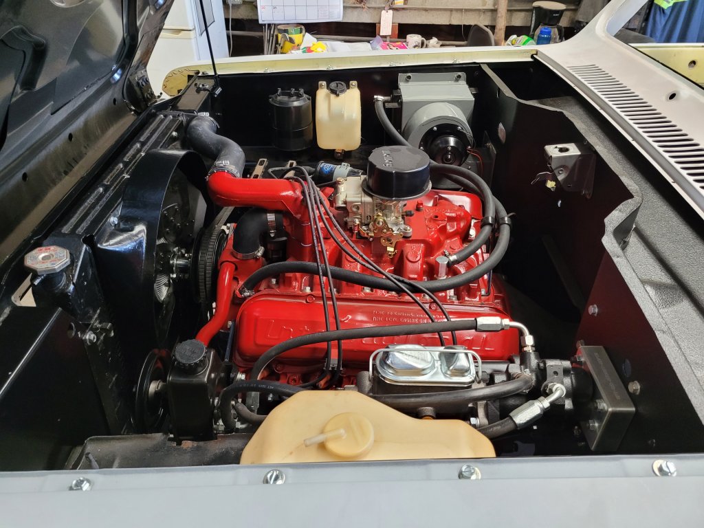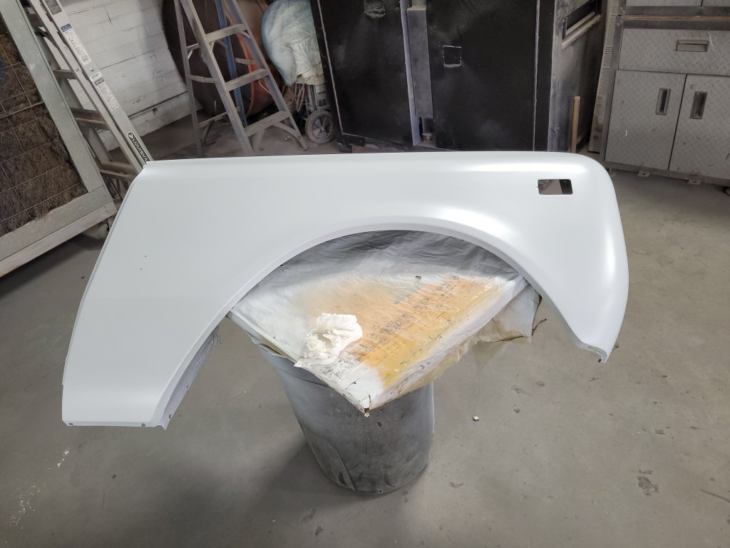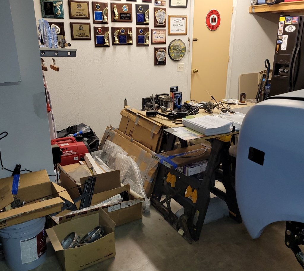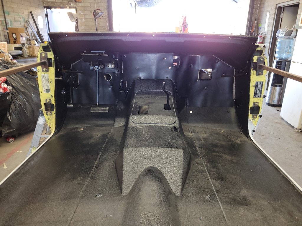 Jose our companies painter, whom keeps all of our construction rental equipment looking good has been working hard on the tub, fenders, doors, tailgate and windshield frame for the last two weeks. The driver side of the Scout starting at the lower corner of the front windshield and continuing through to the lower rear corner of the front fender had rusted through from a combination of packed dirt and rain over the years. On the fender he cut out the rusted portion and welded in a patch piece. On the windshield frame he cut out the rust hole in the lower drivers side corner, sand blasted and welded in some new metal. This past Friday I finally got the tub back on the chassis. I bolted in my reconditioned brake pedal and parking brake assembly along with the hood latch. I'm waiting patiently for my IHPA order to arrive with my firewall pad, hydro boost brake kit, master cylinder and proportioning valve so I can get those items installed so I can see where I will be mounting my 14 circuit wiring kit.