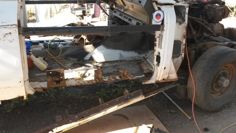 There was less rust on the floor so I made some "door" cuts to access the cross braces.