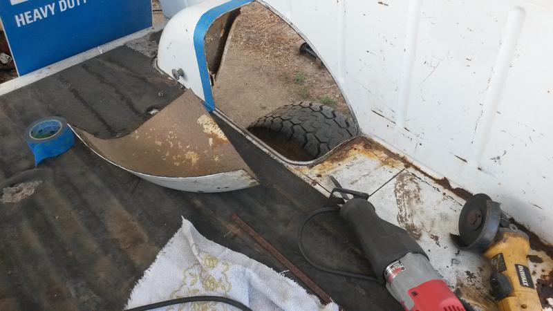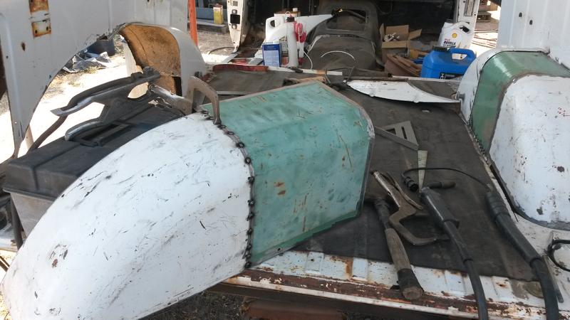 Making progress on the fenders. Got the passenger side tacked into place. It still has a couple of gaps. Today I started work on the driver side.