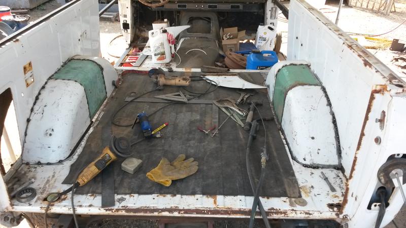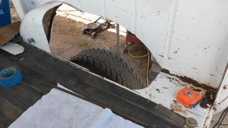 After what seems like forever, I'm getting back on this project! I set the body back on the frame and after killing some wasps, I started clearancing the rear inner fenders. It feels weird cutting metal that isn't all rusted.