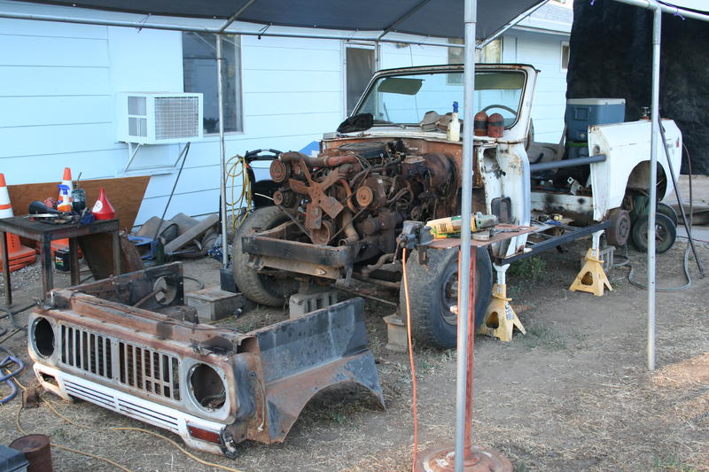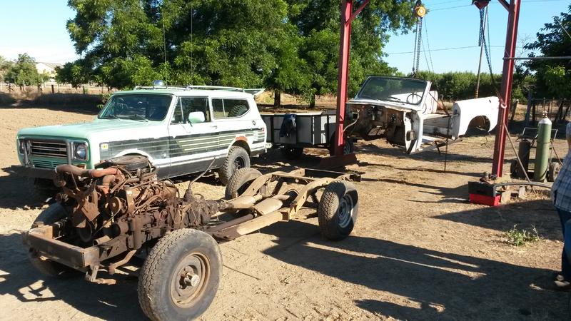 To get the body close to the frame, I think you will run into problems because of the way the frame kicks up too soon interfering with the front floor of the Scout. Then the frame rises again over the rear axle again too high for the rear floor. You can kind of see this in this photo. Seems like the thing to do is to lengthen the frame under the front floor to get that first rise past the step-up in the floor, then eliminate the rise over the rear axle. Of course, mental modifying is easy:smilewinkgrin: