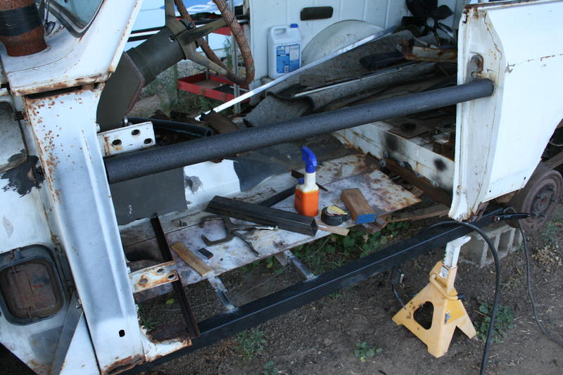 of a roll cage) the padding is 'cause I hit my head on it already. The new rocker is 2x2" square tube .090 wall.