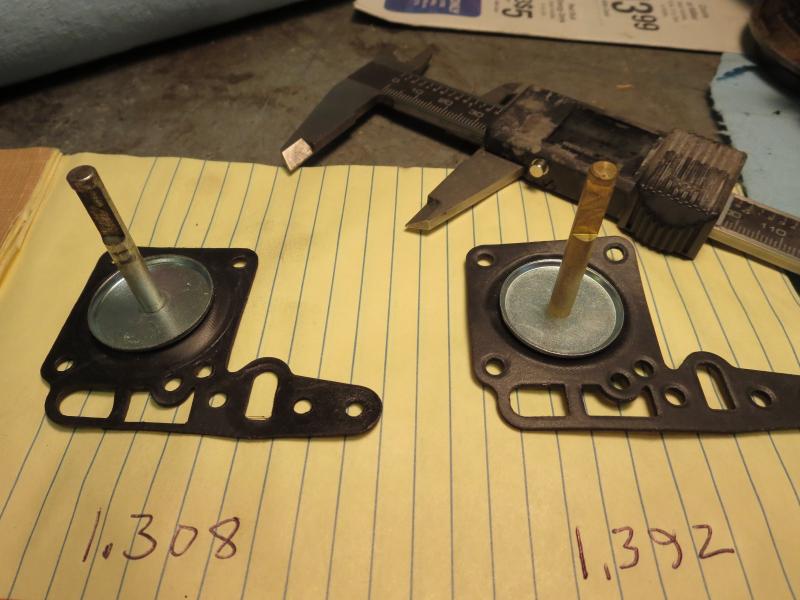 I am also trying to figure if the accelerator pump is going to work since the shaft on the pump diaphragm from the kit is slightly longer (.084) than the part that I am replacing. This carb has a plastic cam. I'll know more on this when I put it back together.