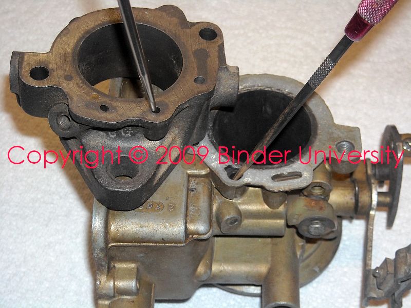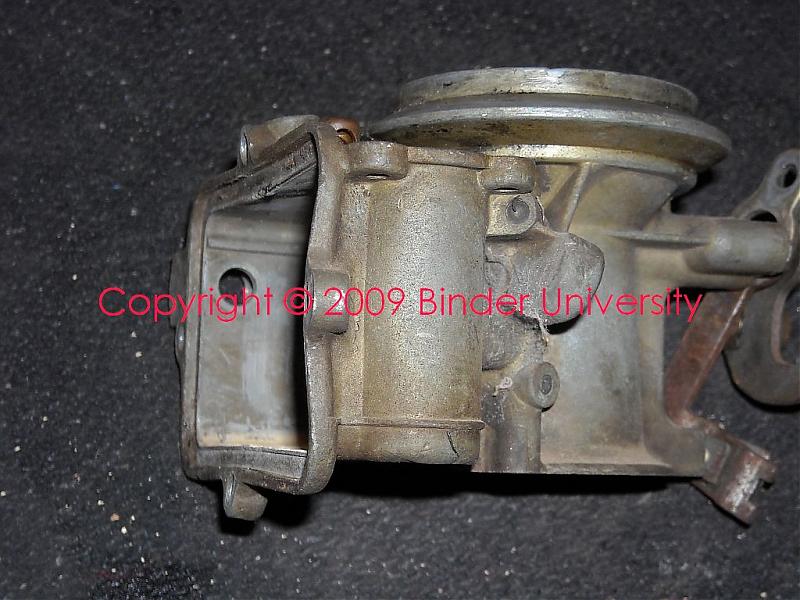 These carbs are made from a cast zinc process, the throttle body is cast iron. The zinc is relatively soft and malleable...up to a point! When that point is exceeded, it cracks. Some of the these main bodies will show stress cracking around any of those four screw bosses. Those bodies are usually declared scrap as fuel will always seep.