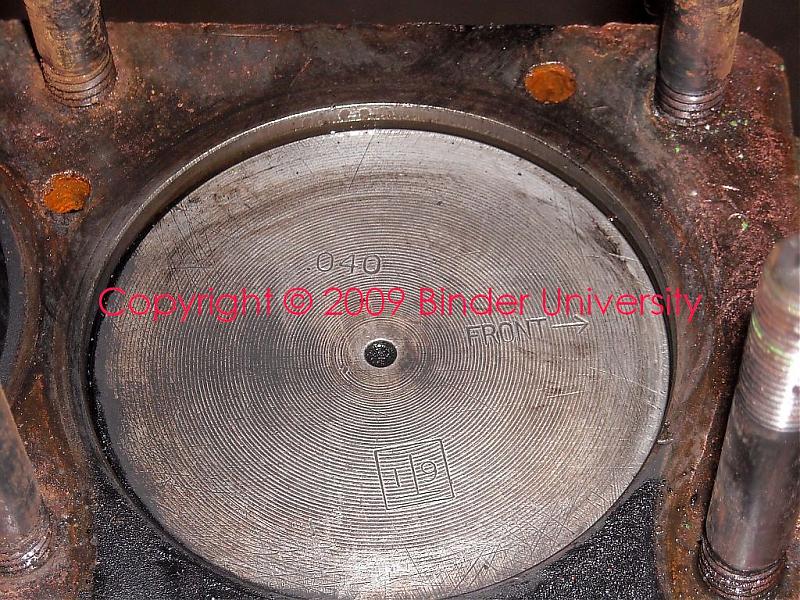 The scratches/gouges on the tops of the pistons tell us this motor has been "de-coked" since it was rebuilt (probably using a screwdriver for a scraper!), that goes along with the botched head gasket.