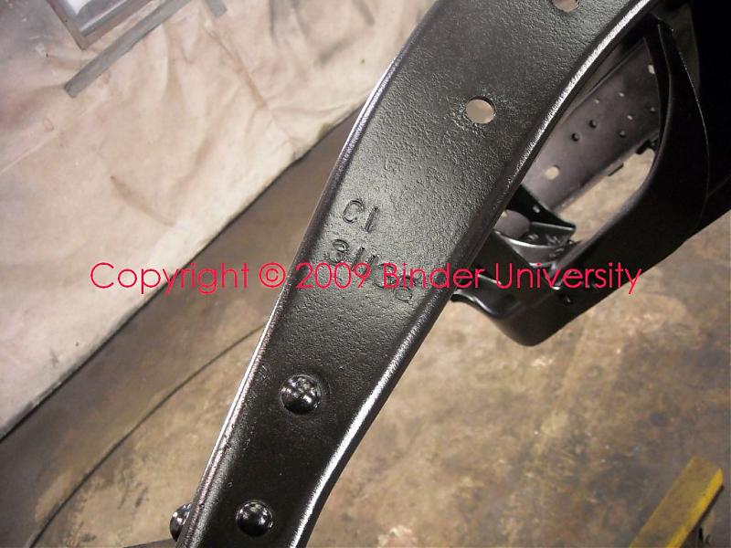 We can now see some witness marks at various points on the frame rails, we "think" those are a manufacturer's id for the stamped rails which were most likely outsourced by IH and not done in-house...but that is only conjecture right now.