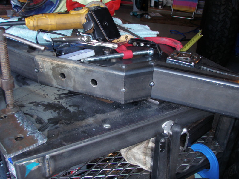 since the fit was good the next step was to box every thing up and finish weld. This picture also shows the frame tabs to hold the cross member. I also took ian's advice on extreme 4x4 to lighten up the weight of my Scout by using pvc for drive shafts.:ihih: