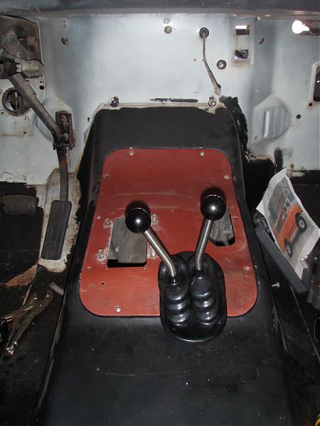 with transmission tunnel cover in place you can see how far the Dana 300 was moved. The access in the upper right is where the Dana 20 shifter came through.​