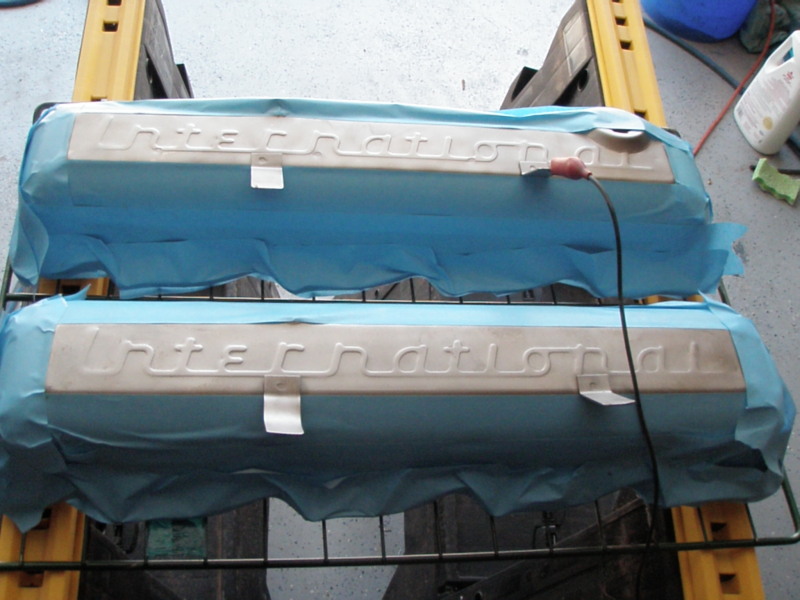 getting ready to lay down some silver. The top valve cover is grounded to give the part a negative charge. When the paint comes out of the tip of the powder coat gun the powder is positively charged and the positive paint particles are drawn to the negative part.​