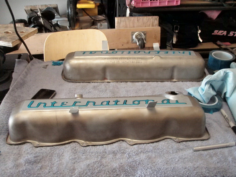 the silver is laid down and I have the raised lettering (International) masked off. I then lay down the black and put into the oven and finish the process.​