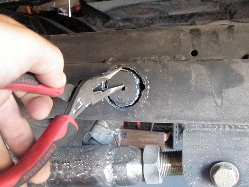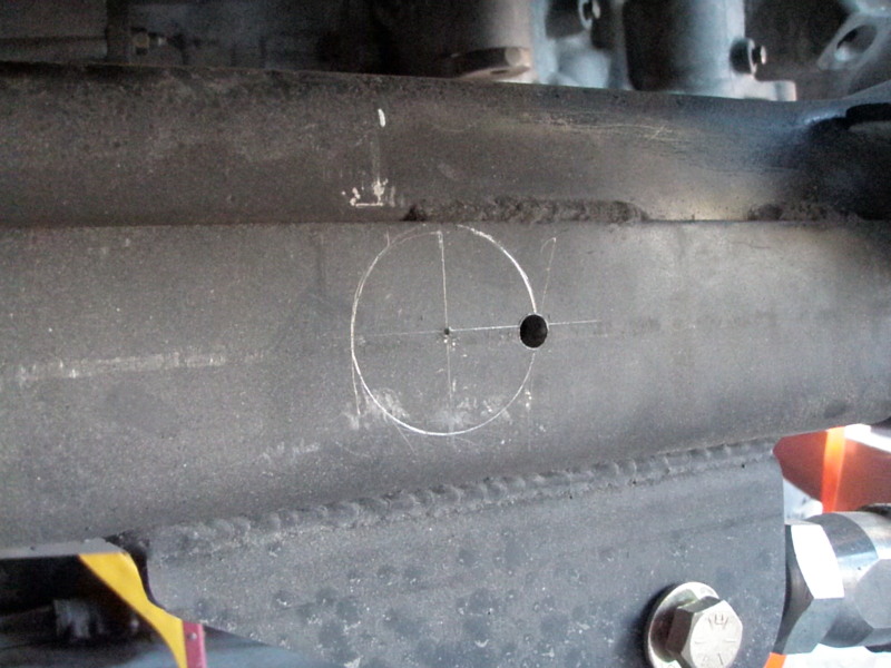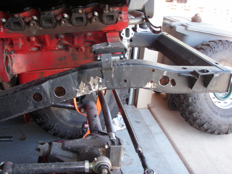 this picture shows how I had to notch the cross member to make sure the drive shaft would not touch during articulation. I have to finish up the welding on the front side.​