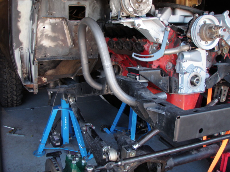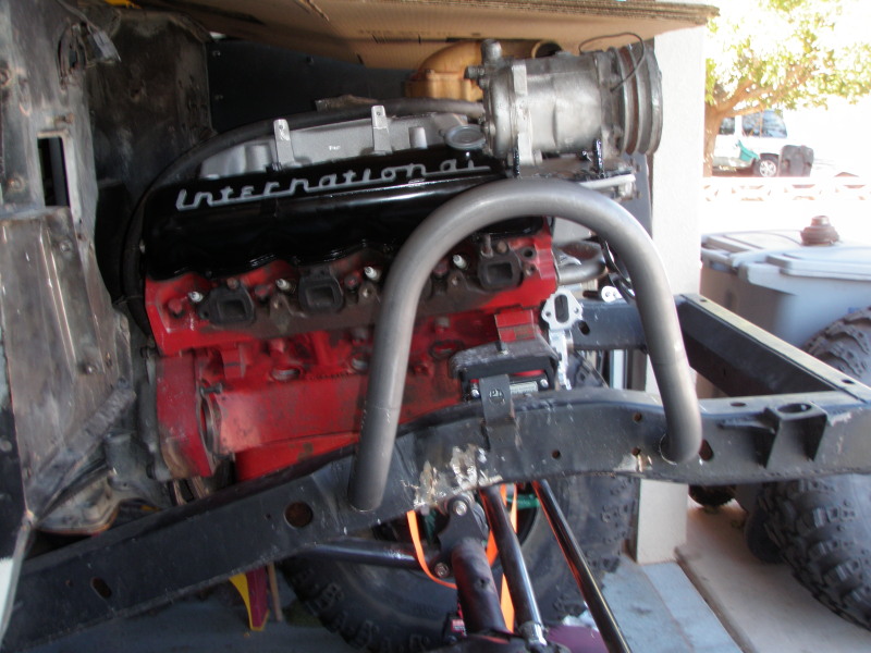 I have the power and drive train all put together and installed. The motor is sitting on a new set of rpt motor mounts from IHOnly. The transmission cross member had to be beefed up and the rpt transmission mount is also from IHOnly.