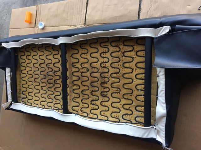 Finally got around to tackling the back seat. It was in pretty rough shape on the outside but surprisingly in good shape underneath. I soaked the foam in my bathtub full of soap and oxy clean for a couple hours. They weighed about 70 lbs when I tried lifting them out. Had to let them partially dry in the tub before attempting to move them. Pretty sure they would’ve fallen apart from the weight. Sanded down the frame underneath and painted with rust preventative. Sanded down all the brackets and painted them with Eastwood satin chassis black. Here’s a couple pics of before and after. Not completely done yet very close.