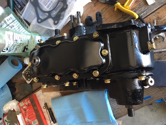 Just as I had all my cooling issues ironed out and took the truck on a 30 mile drive I decided it was time to make her inoperable again. I had a decent leak coming from the t case and didn't have the confidence in taking the truck long distances until I resealed it. It was pretty much leaking out of every orifice. Also wanted to know if the seal between t case and transmission was leaking. Pulled it out, ground off at least 3 inches of crud from all sides, pulled it all apart, and put it back together. Was a relatively easy deal. While the t case was out it was the perfect time to change out the transmission mount and clean/paint the crossmember. Old one was about as bad as it could get. Picked up an rpt transmission mount from IH parts awhile back. Seal between t case and transmission wasn't leaking for the first couple days but after I replaced the trans mount I noticed the next morning it had started to leak. Glad it took me so long to clean, paint and reseal the damn thing.