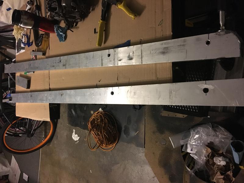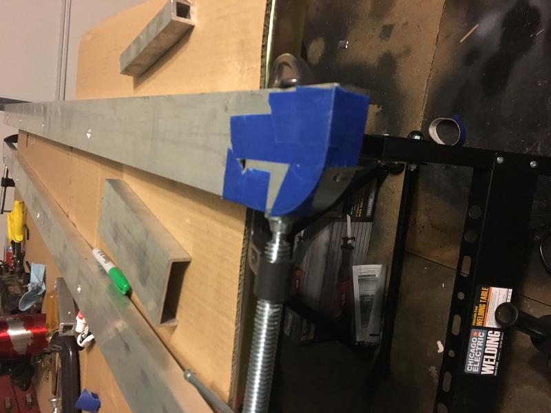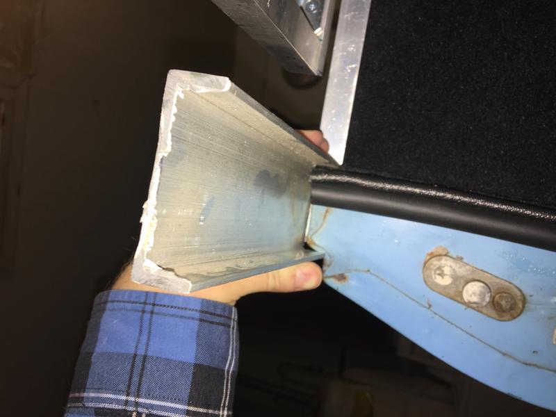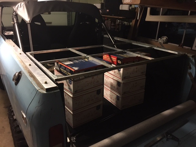 Been working on a custom tonneau to cover the area from the backseat to the tailgate. I decided to make a frame out of square aluminum tubing. Will cover that in hardboard on both sides. All of that will be covered in marine vinyl. I'm using c channel aluminum as the rail covers as well. Turns out it's also a perfect fit to latch over the back or the tailgate. Gas struts to open and will also keep it from rattling around when down. I will use locking hood pins to secure it shut. It's not theft proof by any means but should help protect the rear carpeting and stereo components from weather and those looking to quickly snatch something out of the back.