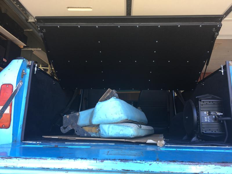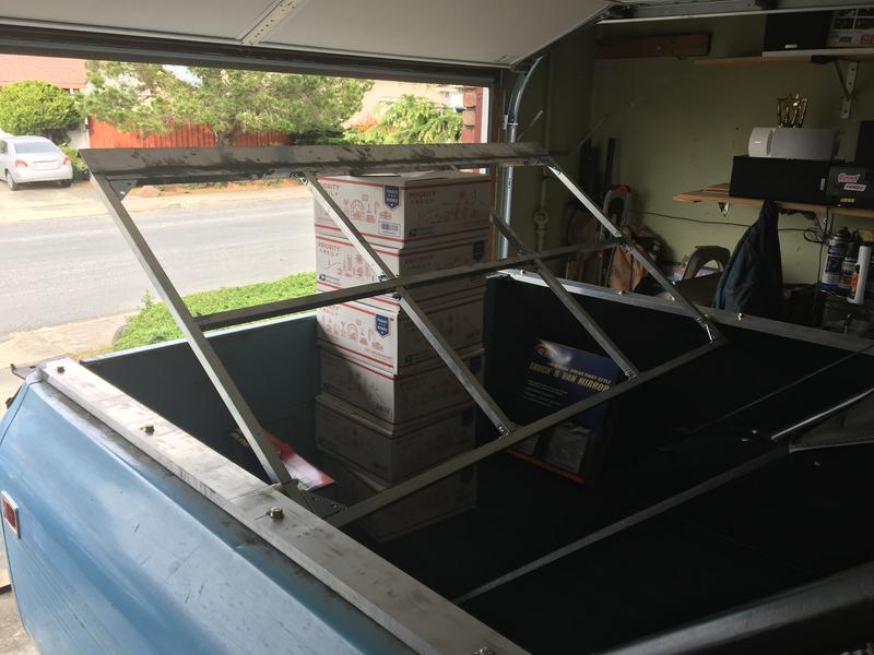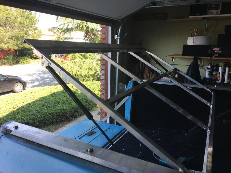 It's in and mostly finished. The bottom cover is currently being covered in vinyl. The rail bolts are temporary as I have decided to get some black finishing washer styles to use. I ordered a heavier duty set of struts as the ones on now hold it fine but don't raise it. I'll probably end up reusing the current ones for the lift gate glass anyways.
