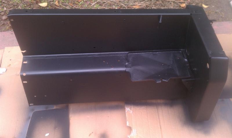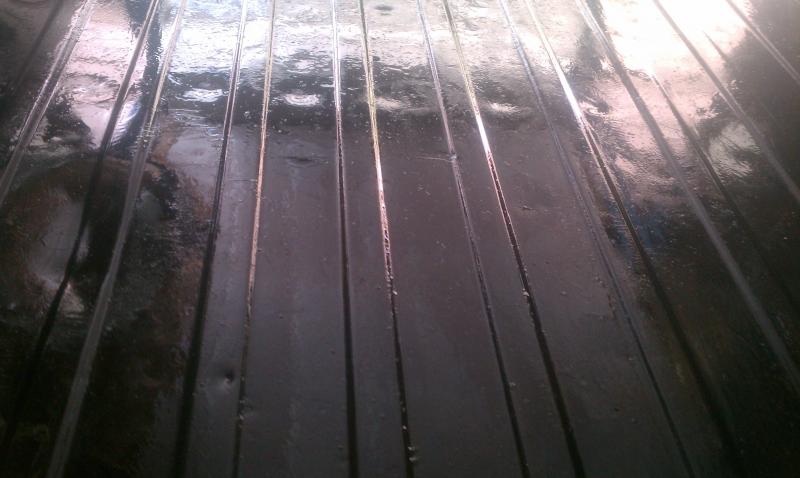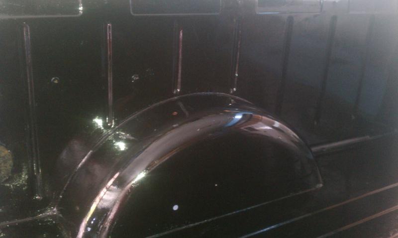 Put por15 on the entire interior of the tub yesterday. It was a total of 2 coats plus a couple touch ups. This will eventually get sound/heat padding and carpet so I wanted as much rust protection as possible. It's the best pictures I could get considering this stuff dries like black glass.