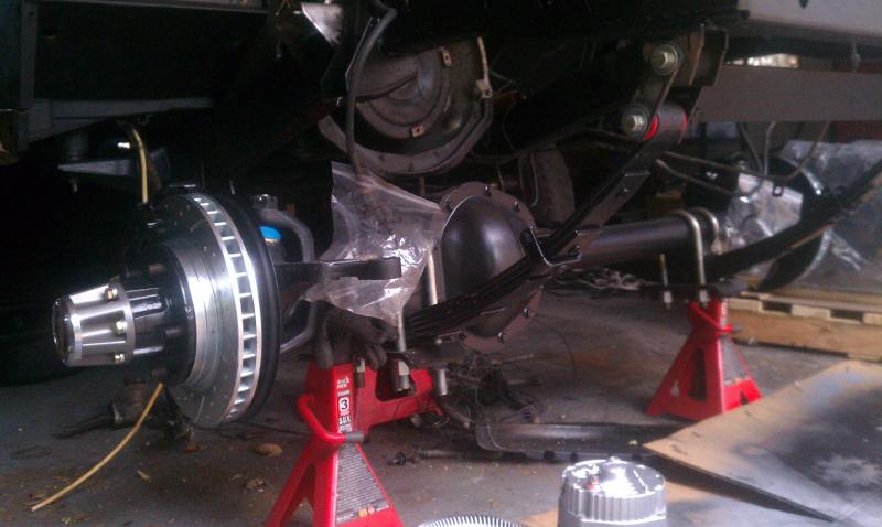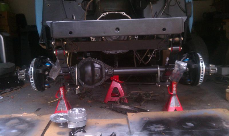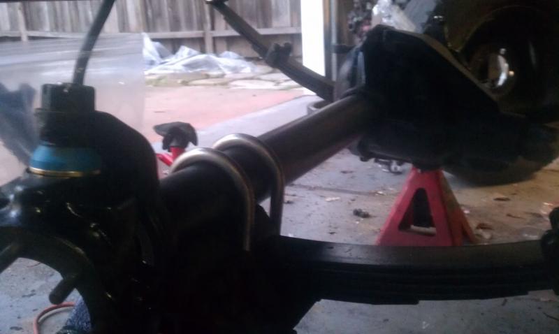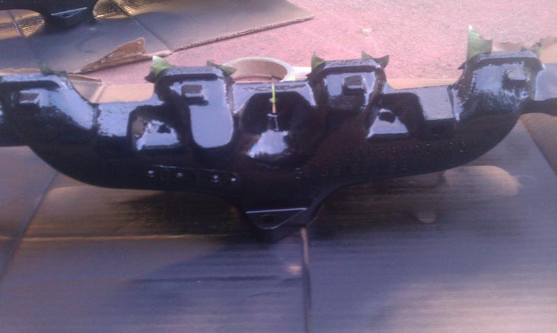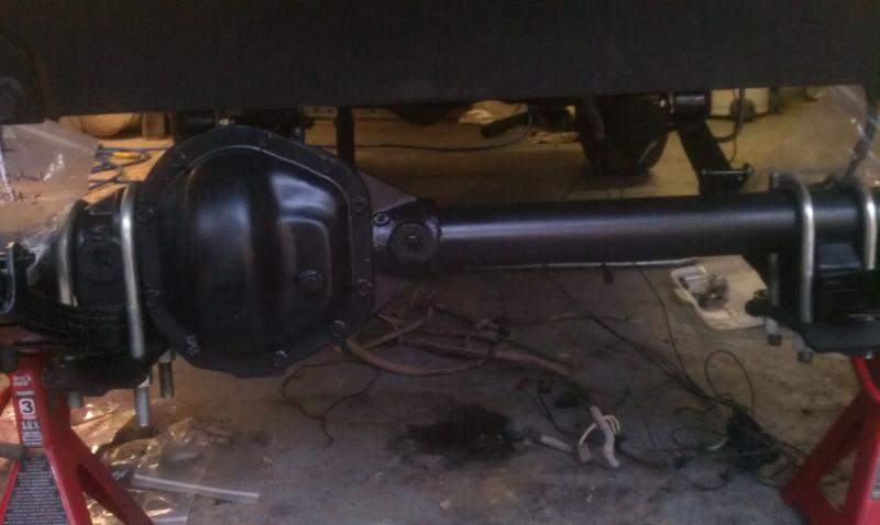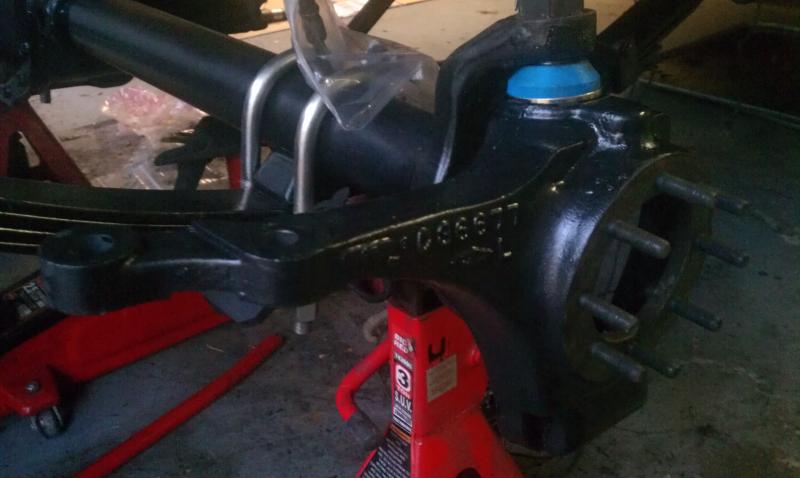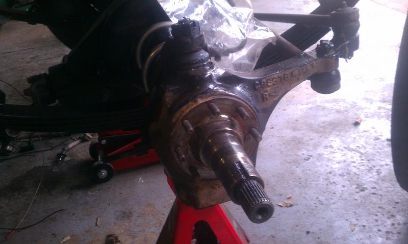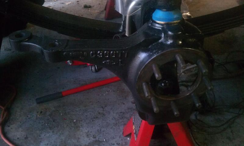 Got the new u joints and ball joints installed. Also cleaned up and painted the knuckles and axle housing with the eastwood chassis black paint. Next step is to get the wheel bearings, calipers, rotors, spindles, and new locking hubs installed. Here are a couple pics of what has been completed so far.