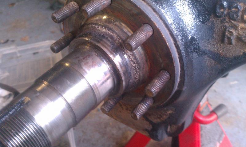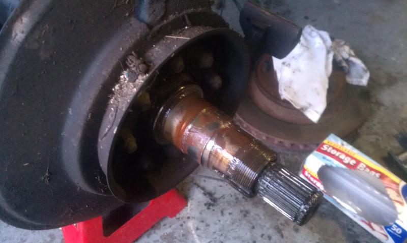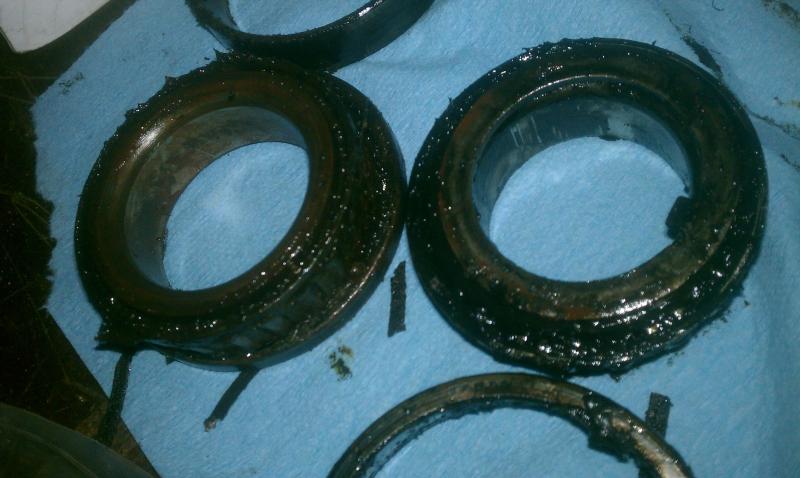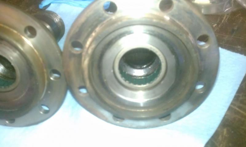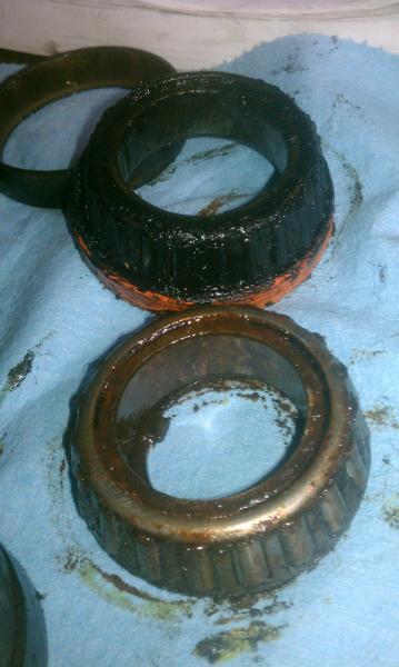 Wheel hubs are getting powder coated so couldn't finish the job today. Here's what the old wheel bearings looked like. Top one is from the drivers (long shaft) side. Grease is solid black.