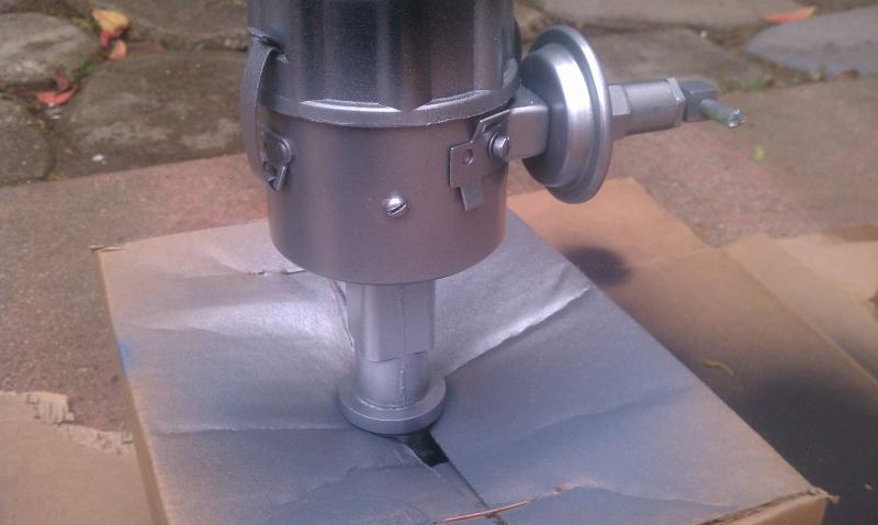 Prestolite distributor w/ old cap for masking. This is coated with some vht aluminum paint and a gray engine enamel primer. I am highly impressed with the quality of this paint.