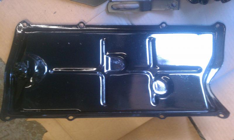 Also coated the timing cover and valley pan in some gloss black engine enamel that will match the engine and intake manifold.