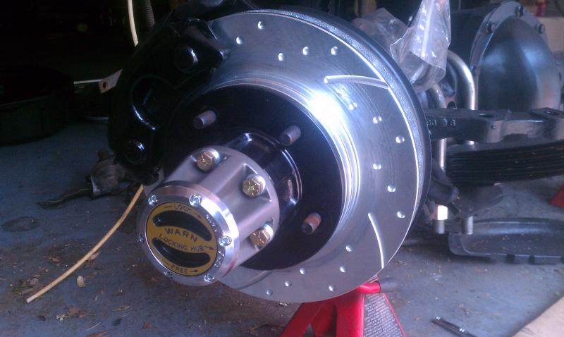 So with the engine still in limbo I have decided to refresh the front d44 with new ball joints, u joints, wheel bearings, spindle bearings and seals, new locking hubs, powder coated calipers, and some dimpled and slotted disc brakes.