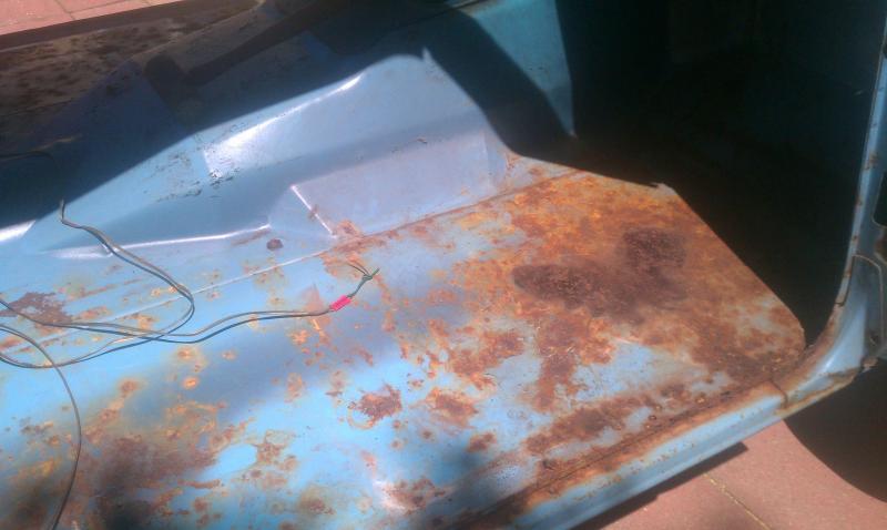 Started clearing out the interior of the Scout in preparation of the re-wire that is coming soon. Found some rust on the floor pans but much less then I expected. Considering this truck sat in tahoe in the snow I am pretty pleased and surprised that no floor pans will need replacing. Spent yesterday wire brushing out all rust spots and coated the metal in metal etch to soak overnight. Today I still need to sand down the good paint with some 400 grit sandpaper so that the por 15 will adhere properly.