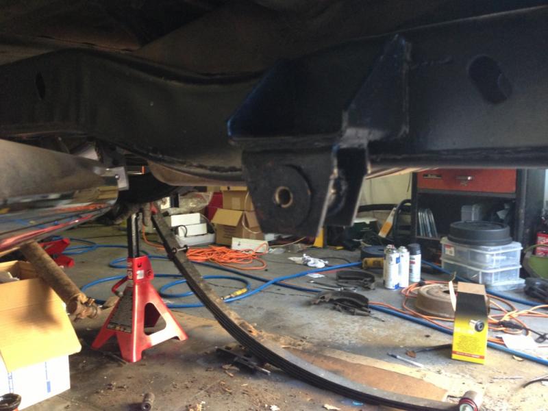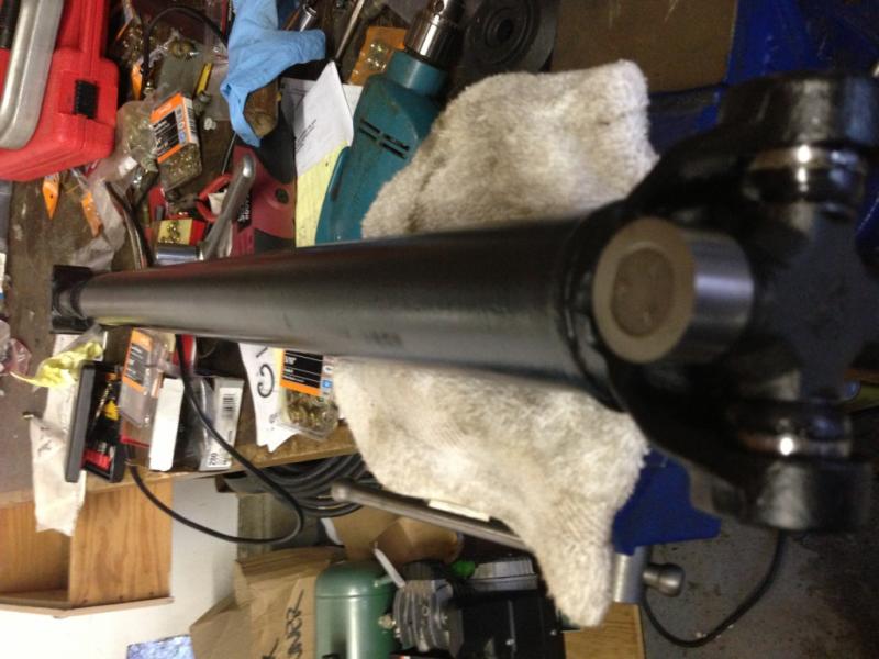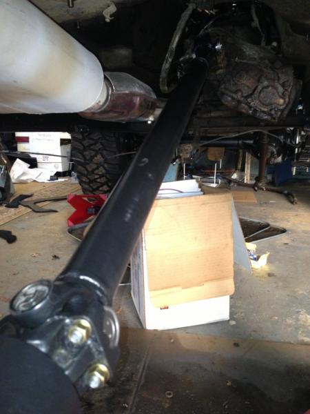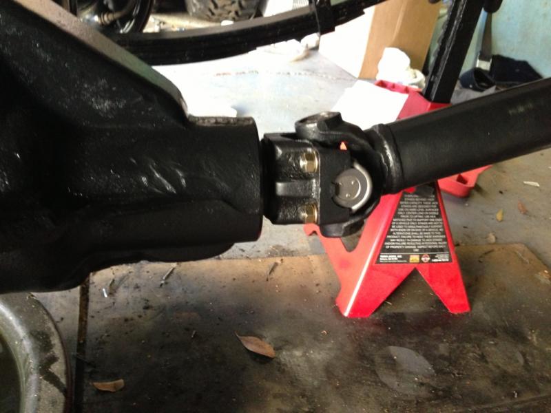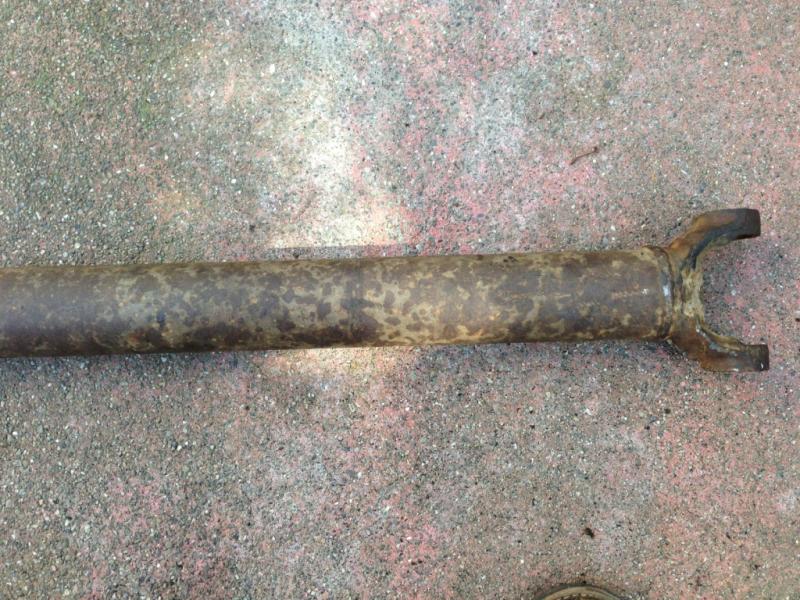Put in some Energy Suspension poly shackle bushings. I forgot to do this when I swapped in the new springs and decided since the rear end was out now was the most opportune time. Using a ball joint press made getting the old rubber bushings out very easy. Also pulled out the rear driveshaft to clean up, paint, and replace the u joints. Here are some pics.