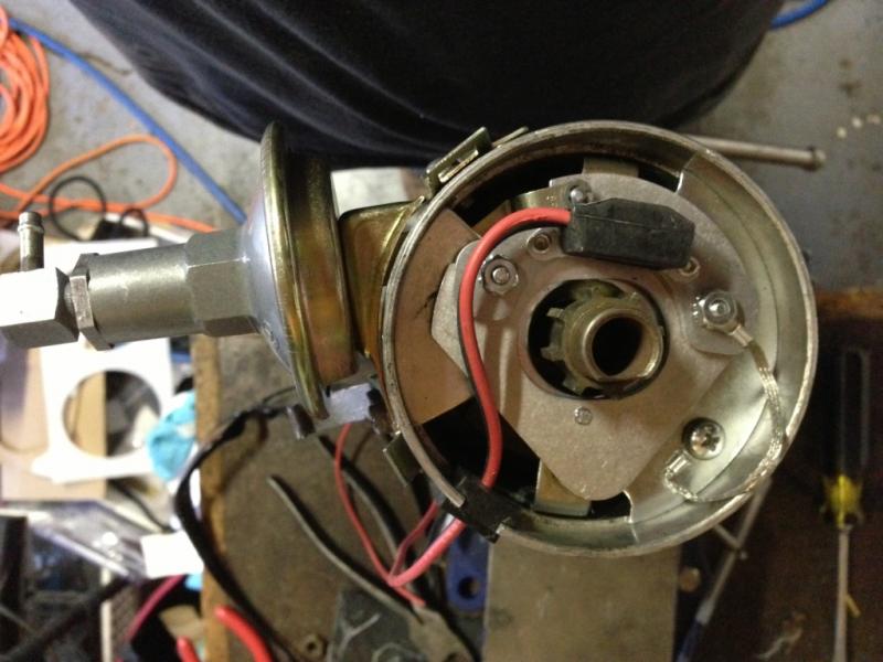I was planning on running the wires underneath the base plate but reconsidered once the vac advance went in. They May or May not have been in the way. I decided not to take the chance.