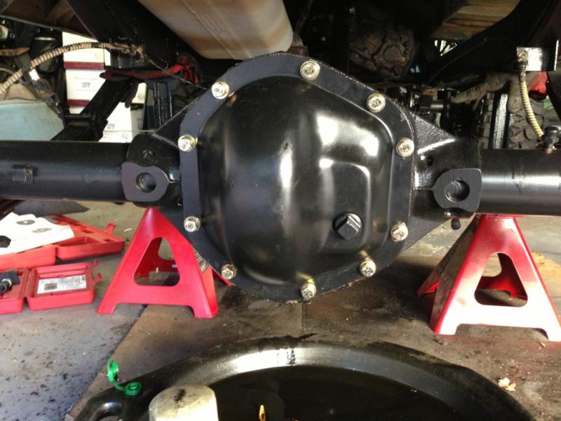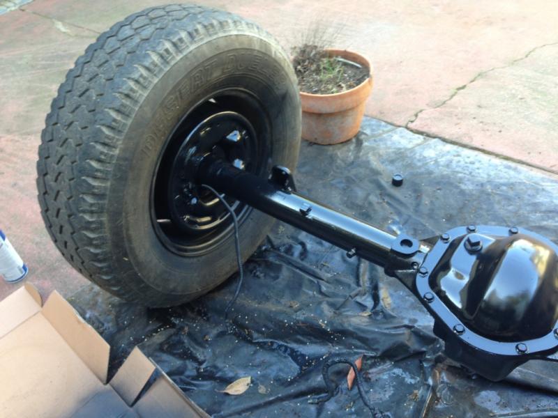 Diff sealed up and driveshaft installed. Went to put on the rear brake line extension and had to cut off the old line because it had rusted solid. I will need to re-flare the line now. Once I get the rear brake lines re-installed the brakes are all ready to go. Will need to fill the system and bleed. Puts me very close to being able to get this thing on the street.