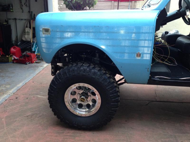 also got the front fenders installed and it's the first time I've seen the truck this way in about 1 1/2 years. You can get a good feel for the final stance. The suspension will settle a bit but for what I was going for I'm very pleased. I plan on driving this thing for awhile before I pull the body apart and do a major overhaul on the bodywork.