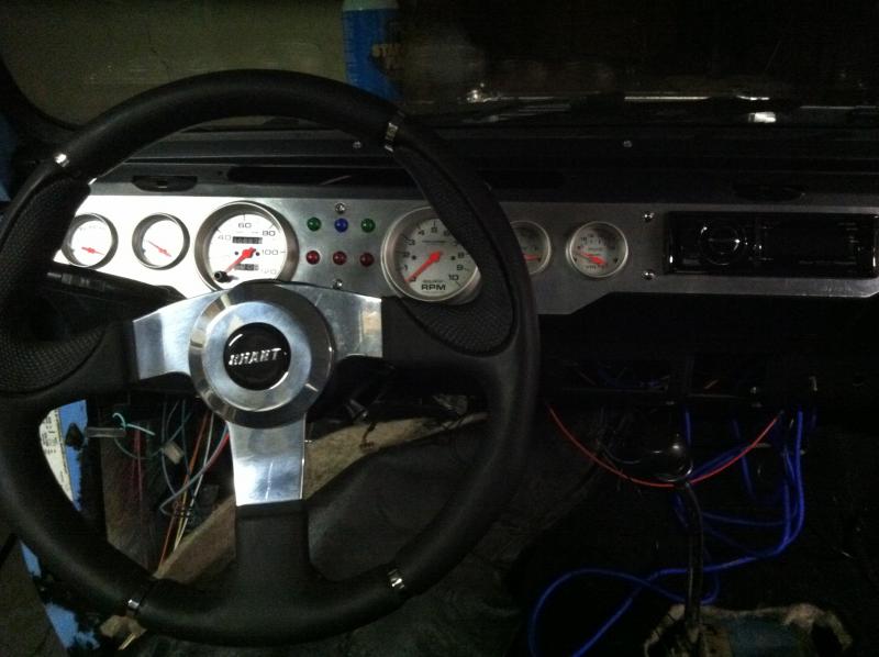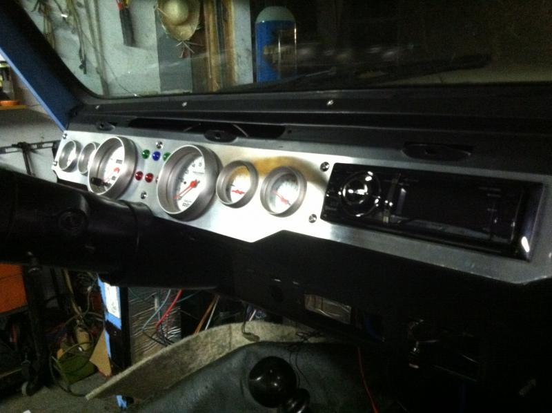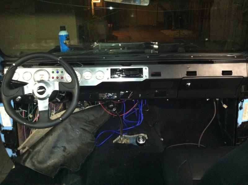 So I've been addicted to working on the interior of the truck lately. I have been able to get the carpet 90% installed. I haven't glued down the drivers firewall or the rear footwell drop. I also was able to get the passenger seat and seatbelt installed. I'm using corbeau moab seats with corbeau 3-point seat belts. I also picked up an entire stereo awhile back. It's a kenwwod head unit, kenwood 4 channel amp, infinity 6.5's in the rear, infinity 5.5's in the front, and an infinithy self powered 10" sub. I have installed all of the stereo except for the speakers for the front doors. Those will have to wait until the doors get re-upholstered. I was also able to get my new plastic glove box that I picked up from IH only installed along with the glove box door that I had painted awhile back. I mounted my amp/sub distribution box to the back of the glove box. The dash is really starting to take shape. Here are some pics of the finished products.