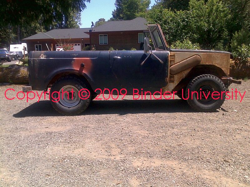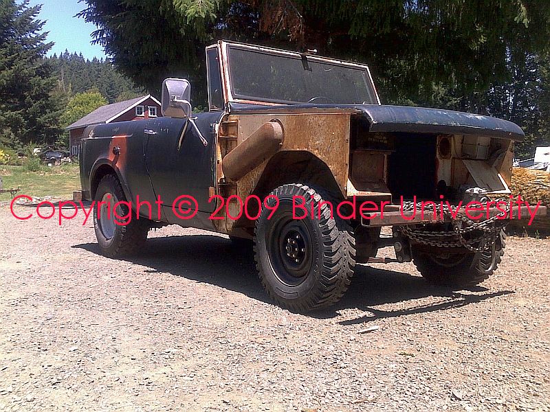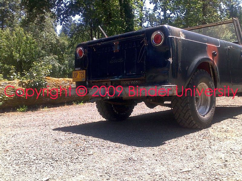 So these shot show 32" tires on the rear only, 6.70x15 stockers on the front, this the nose-down attitude. It sits perfect level with the full set of tires of any size. The 32" tires will clear the front fender wells ok but I'll have to use 1/4" wheel spacers in order to keep the tires out of the springs in a tight turn (or reset the limit stops!) wheels with proper backspacing will fix that also.
