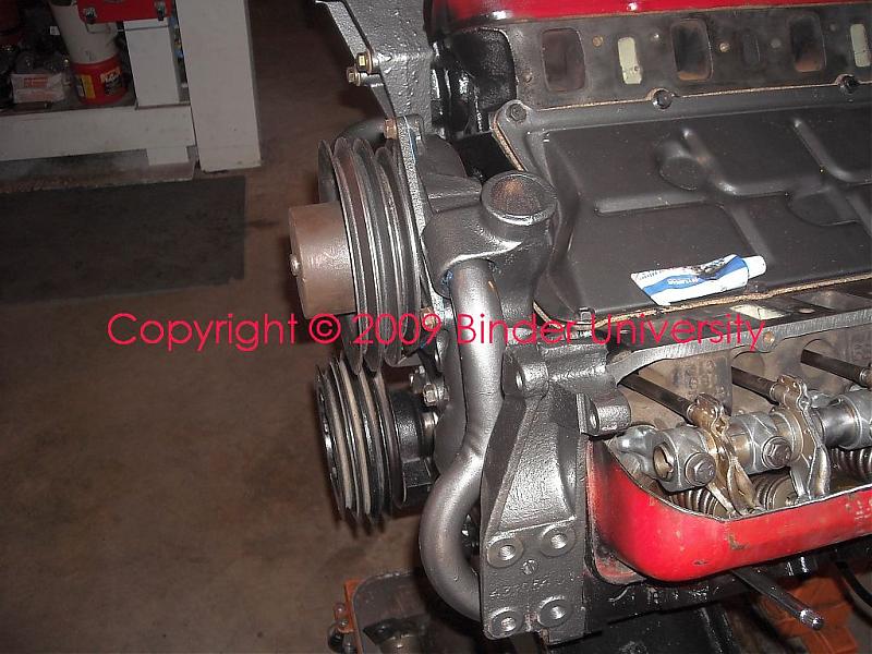 The water pump housing, water tubes, alternator/ac compressor mount, and the ps pump mount have been installed.