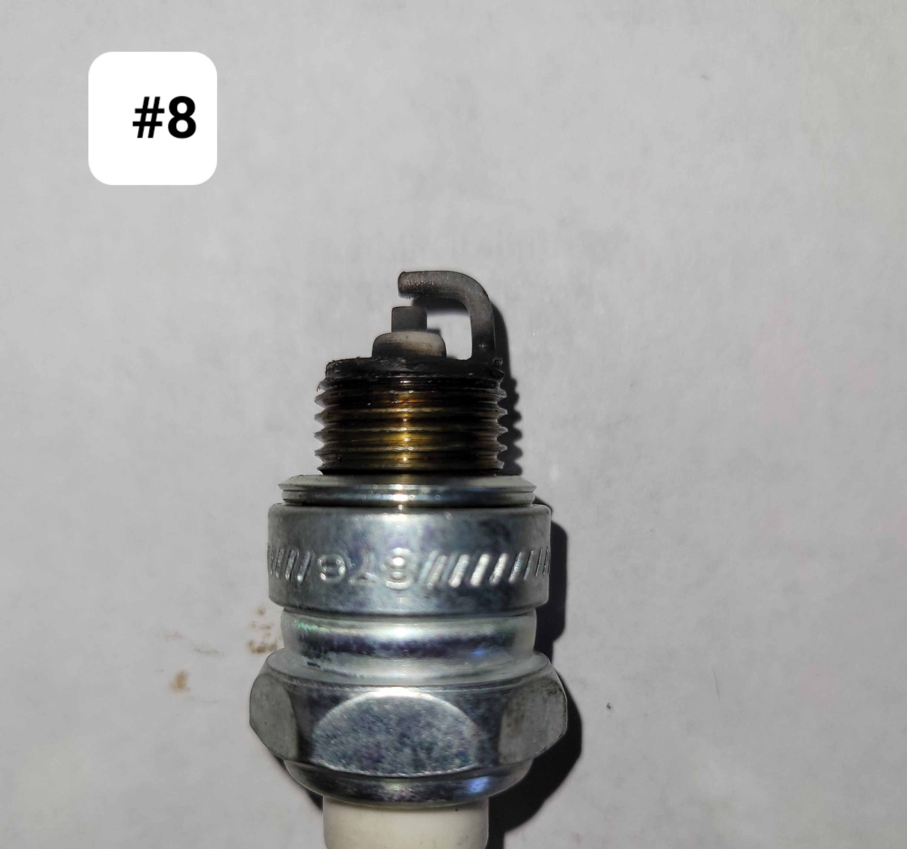 Since this is a rebuilt engine do my rings need to seat more? Would you think engine oil is part of my black soot? The engine does not blow smoke out of the exhaust when I'm driving it. I have included pics of the spark plugs for your viewing. I did notice #7 & #8 spark plugs had a better burn. Also one side of plugs are darker than the other. Plugs are Champion RJ12YC gapped aroud .37-.38.