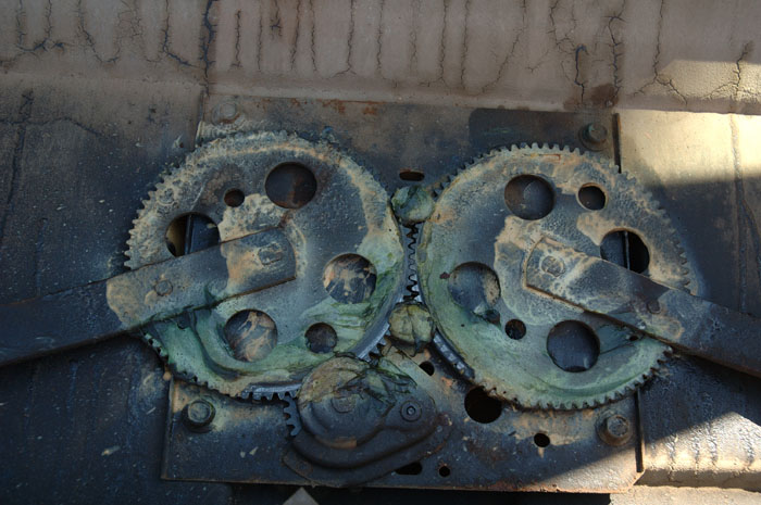 On my t/a there is a shaft that goes from the hand crank to a small gear in the window regulator.