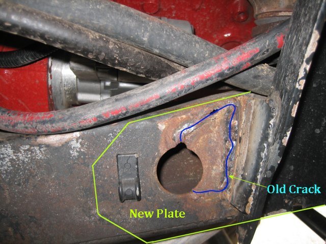 Looks like we should cut that shock tower off, plate the frame and then weld the shock tower back on. Plus check the other side.